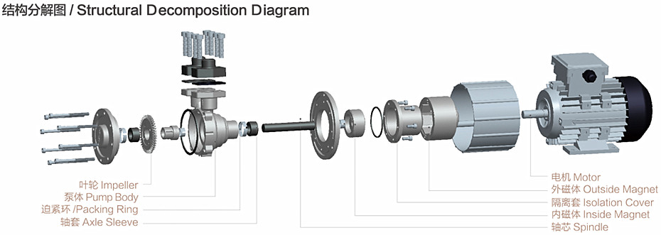 高低溫一體專用磁力泵采用先進設計原理與制造工藝,通過外磁體、隔離套、內磁體之間的磁場傳導,將動密封轉換為靜密封,保證泵浦高溫狀態下的穩定性工作。廣泛配套小型精密高溫模溫機、試驗儀器、木工機械、擠出等行業,泵浦移送循環介質不含顆粒、纖維、非易燃易爆的液體。